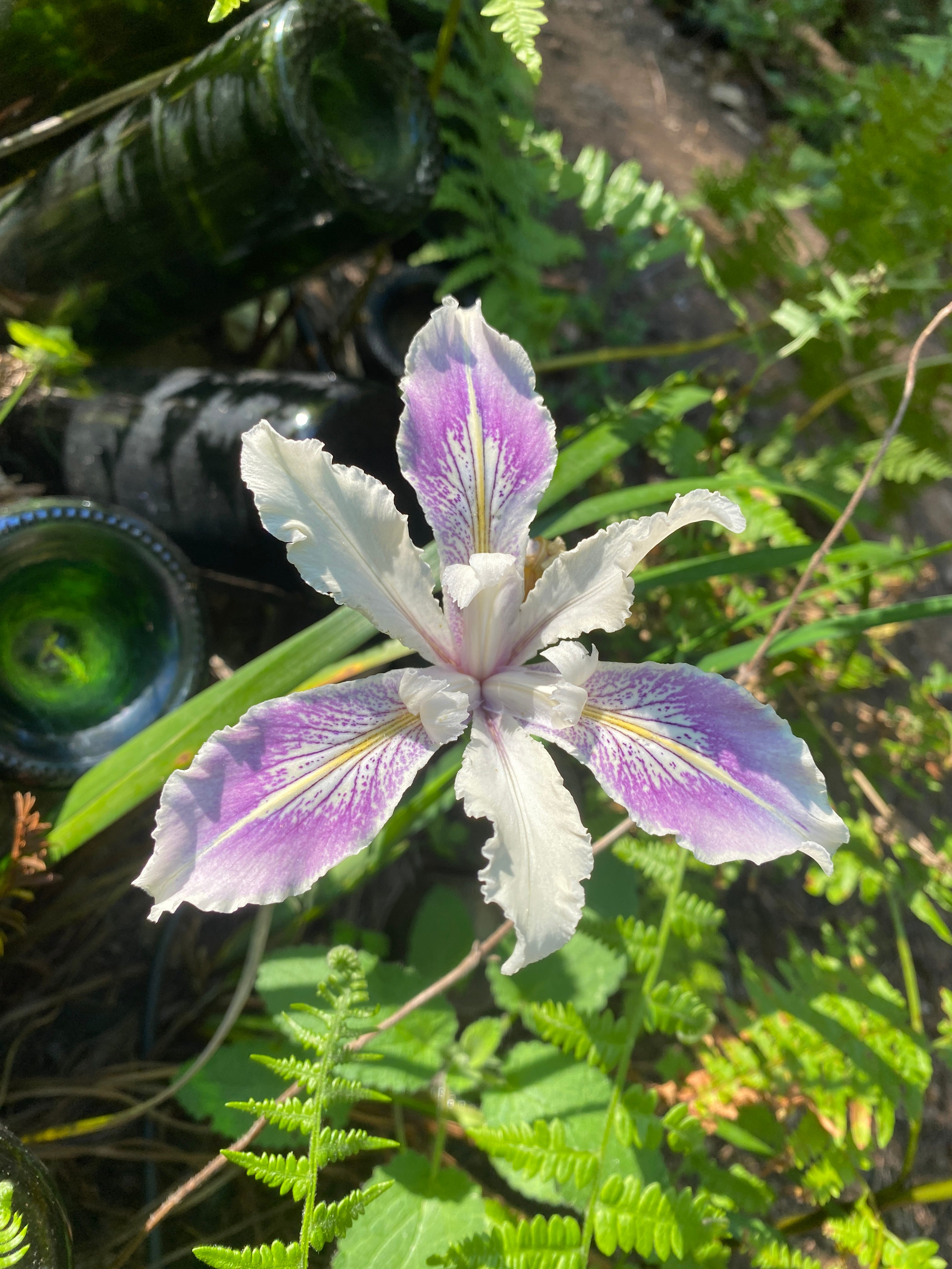 This iris is my favorite of the wild ones that bloom in our hills every spring—an unusual hybrid of the purple and white ones. This year one bloomed early, in the last days before my second knee replacement was due to keep me out of the hills for a while. I took it as a gift. Now I’m recovering well, and want to share it with you.