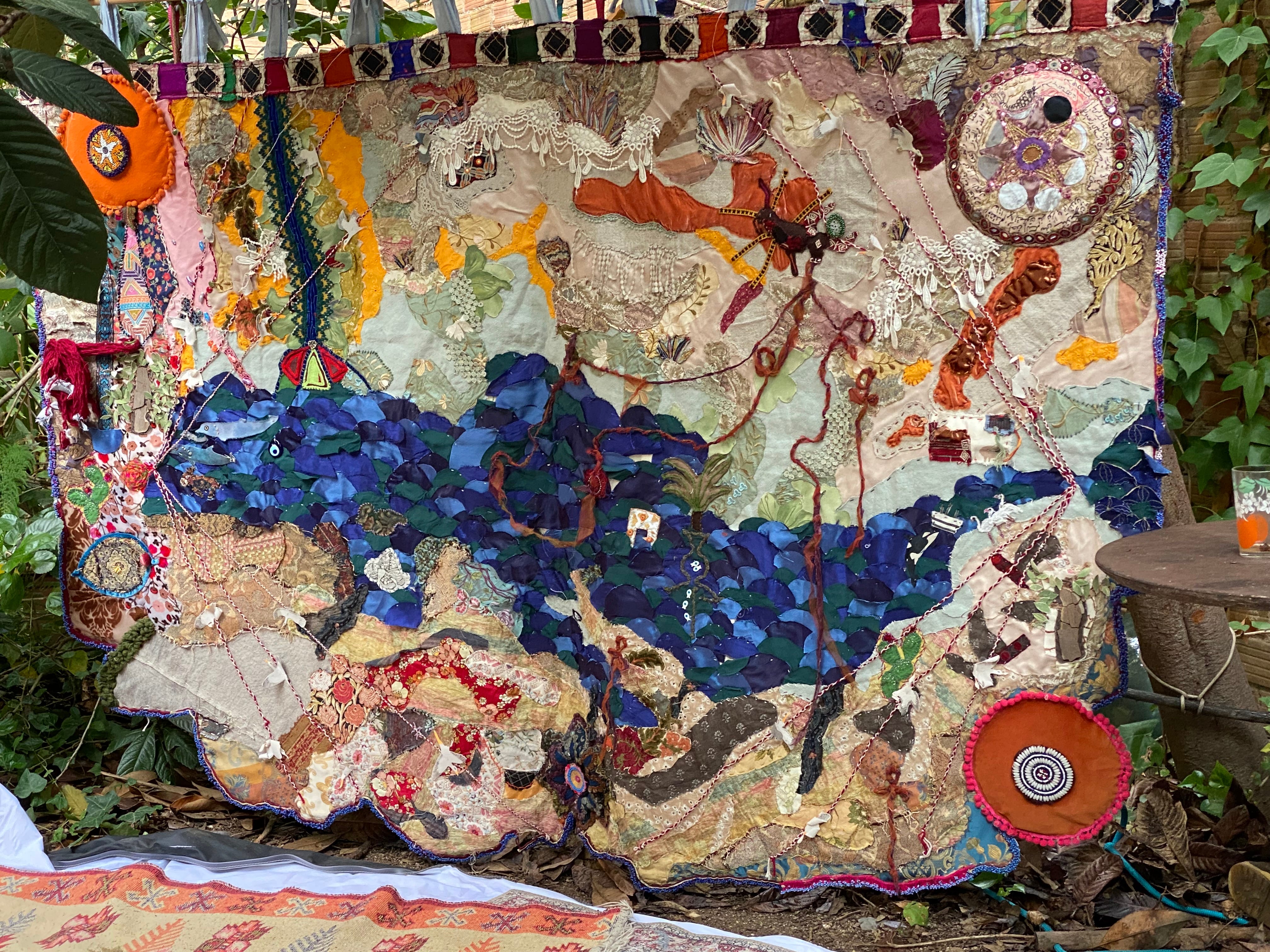 This map of the Mediterranean region is an interactive fiber arts project by Boulos Saad.